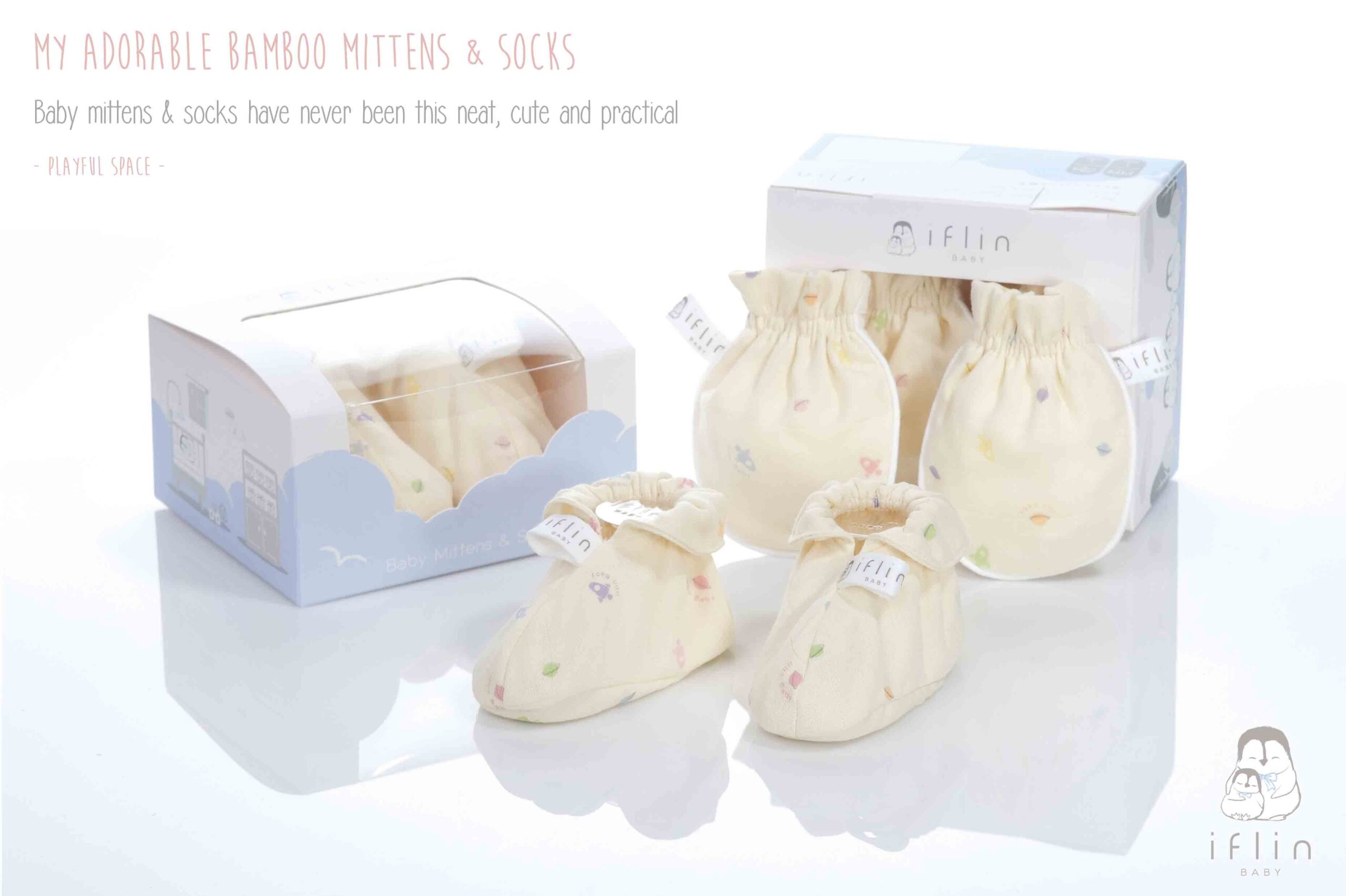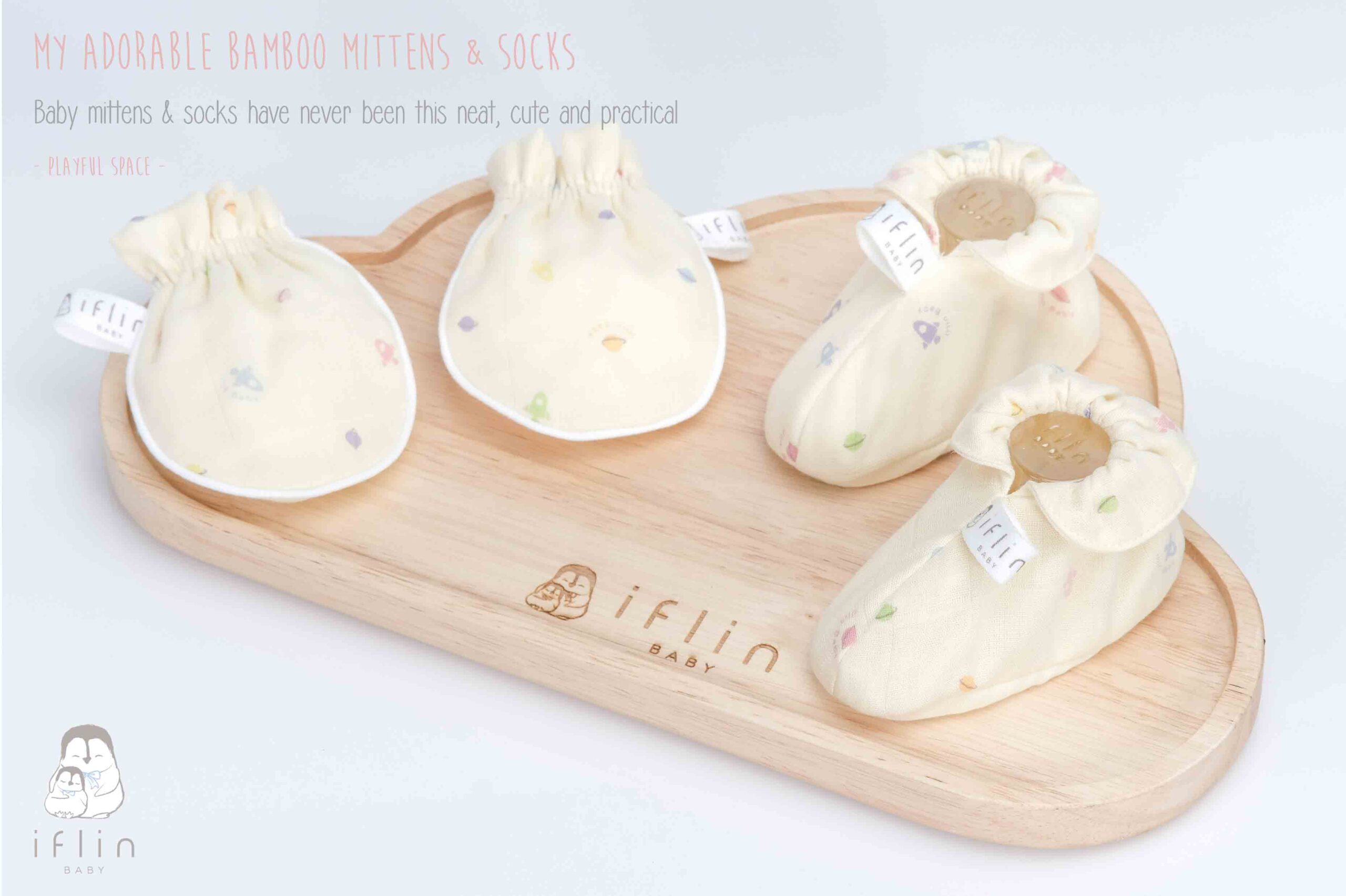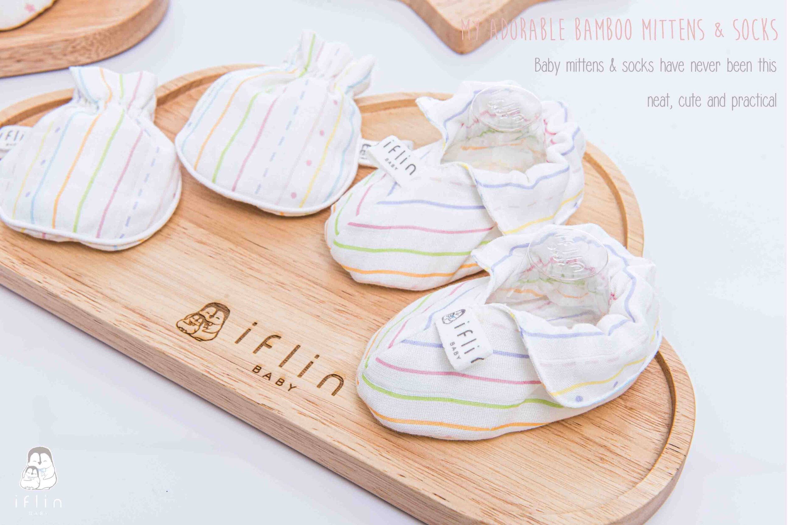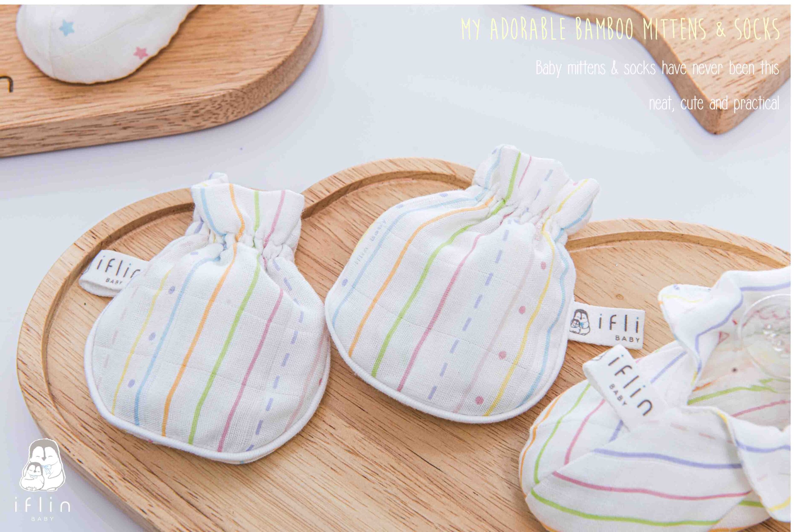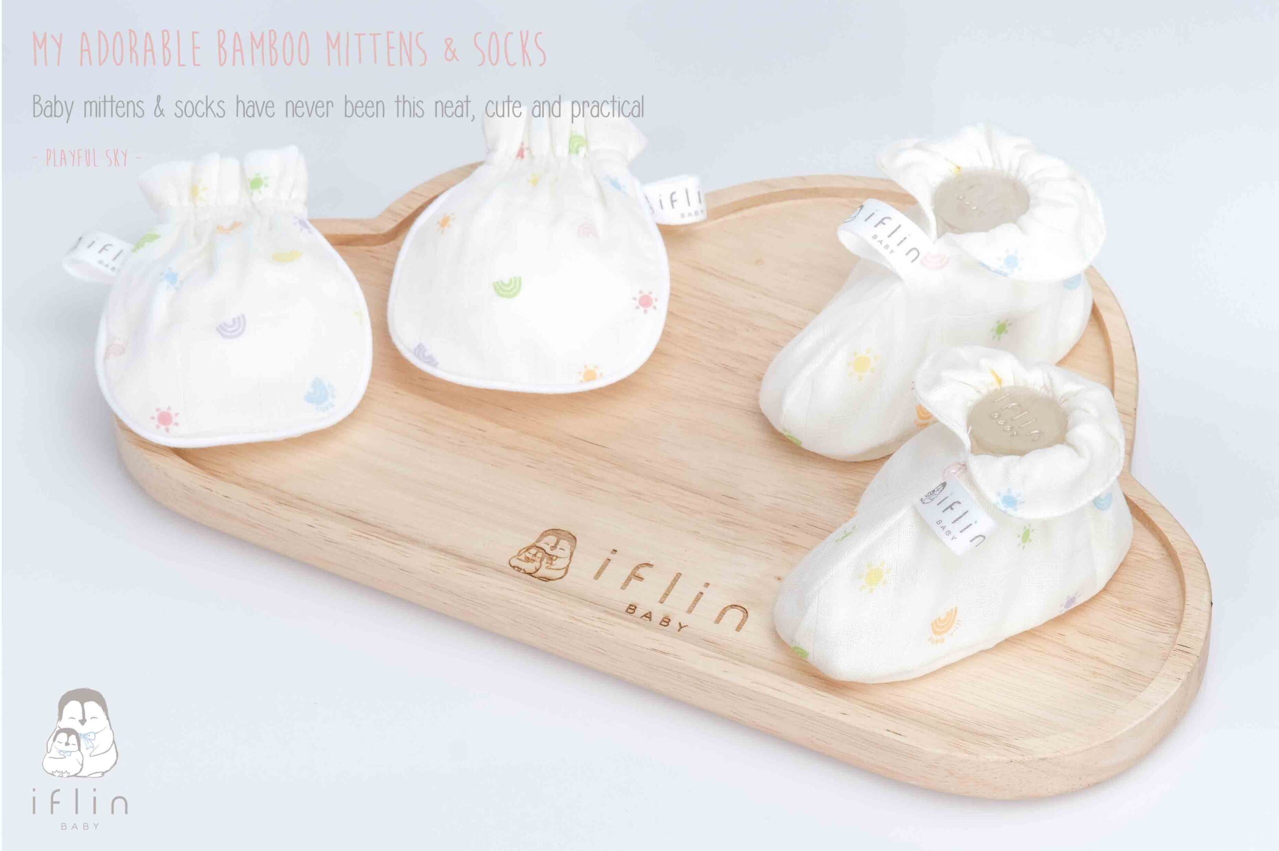 เซตถุงมือ & ถุงเท้าของIflin Baby (อิฟ-ลิ่น เบบี้) ทำจากผ้าใยไผ่เนื้อละเอียด นุ่มนิ่ม ละมุนผิว ไม่บาดผิวและไม่ระคายเคืองผิวลูกน้อย