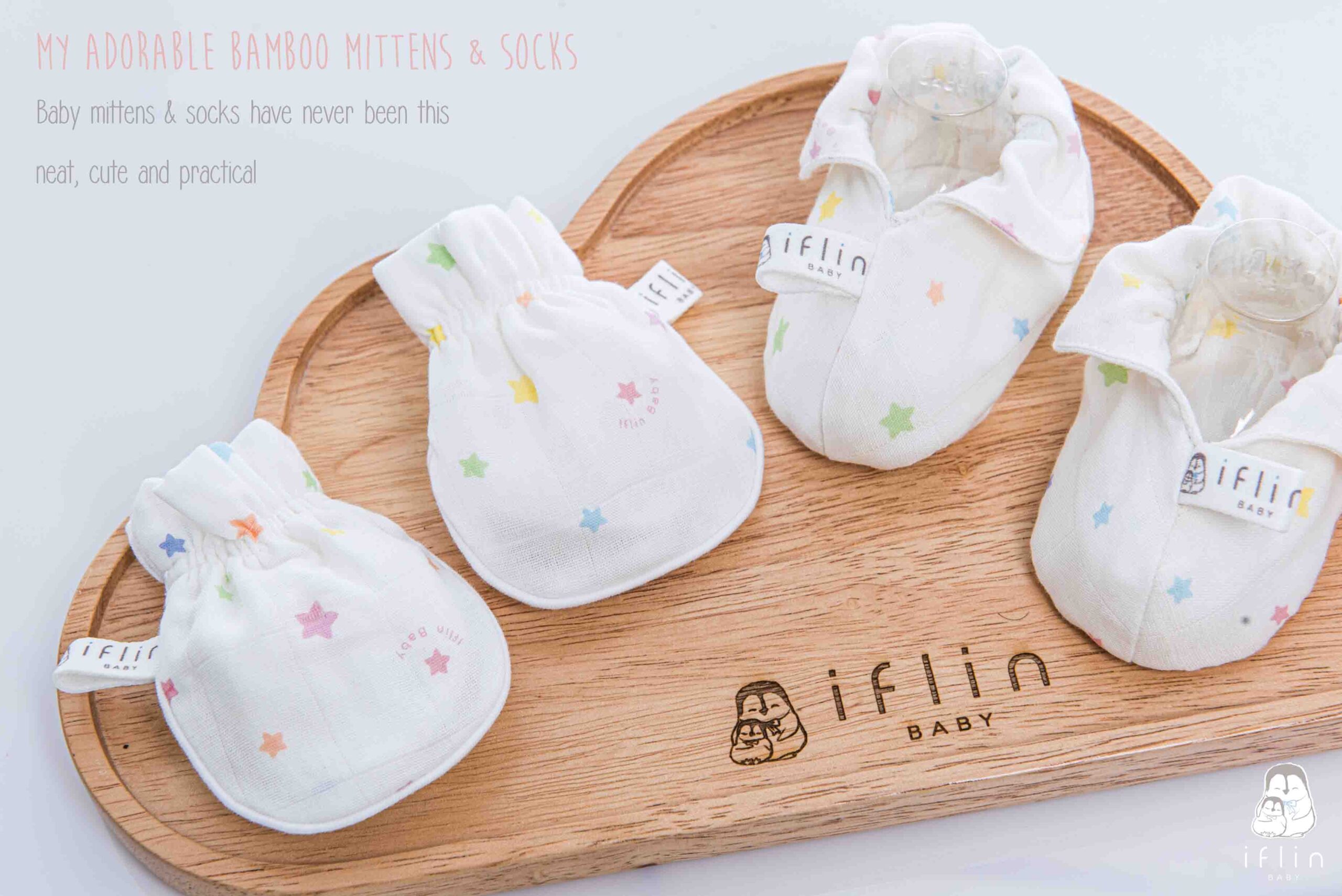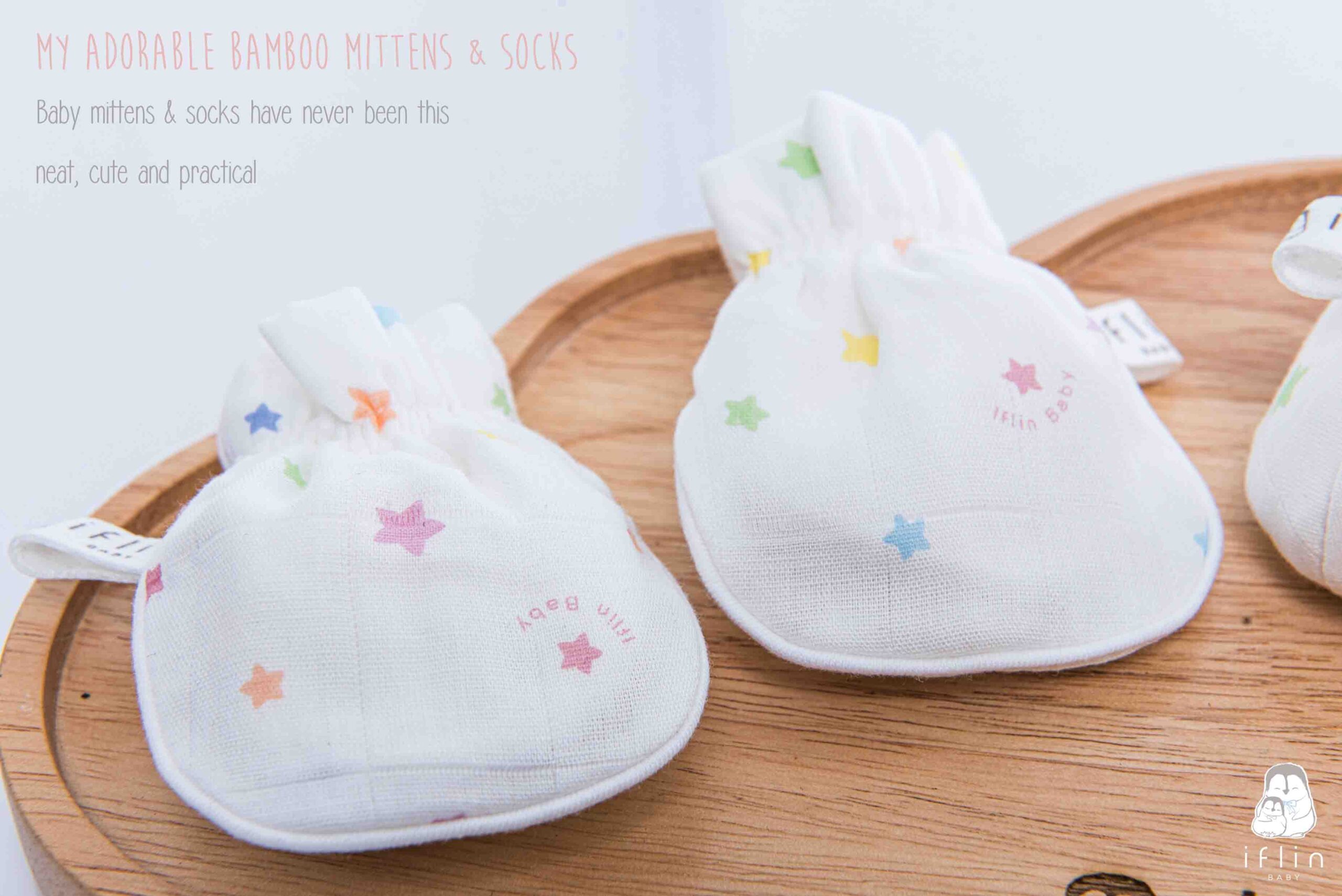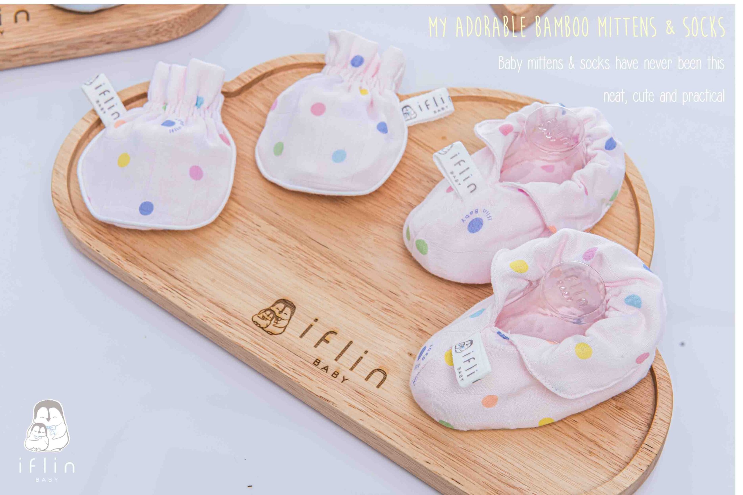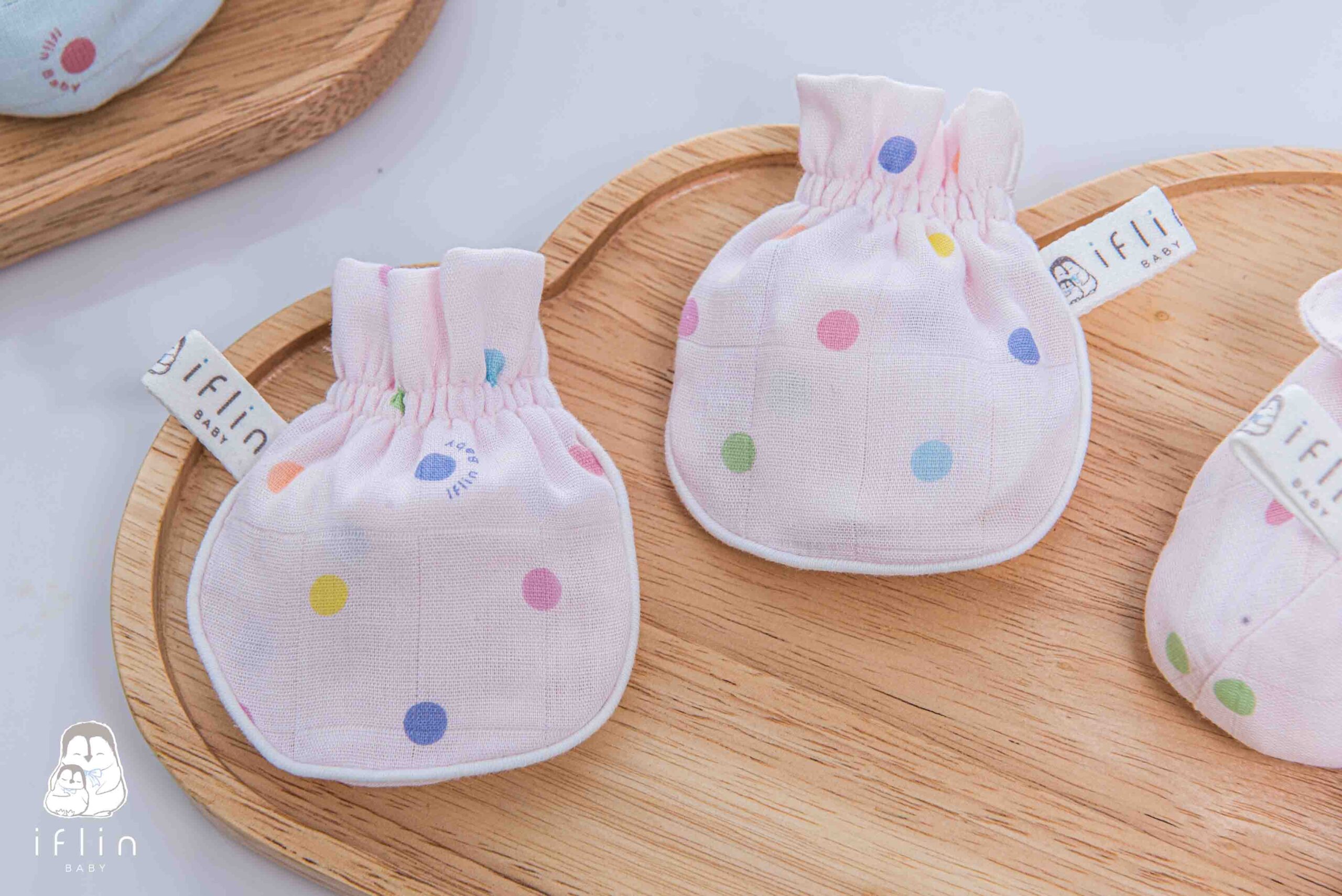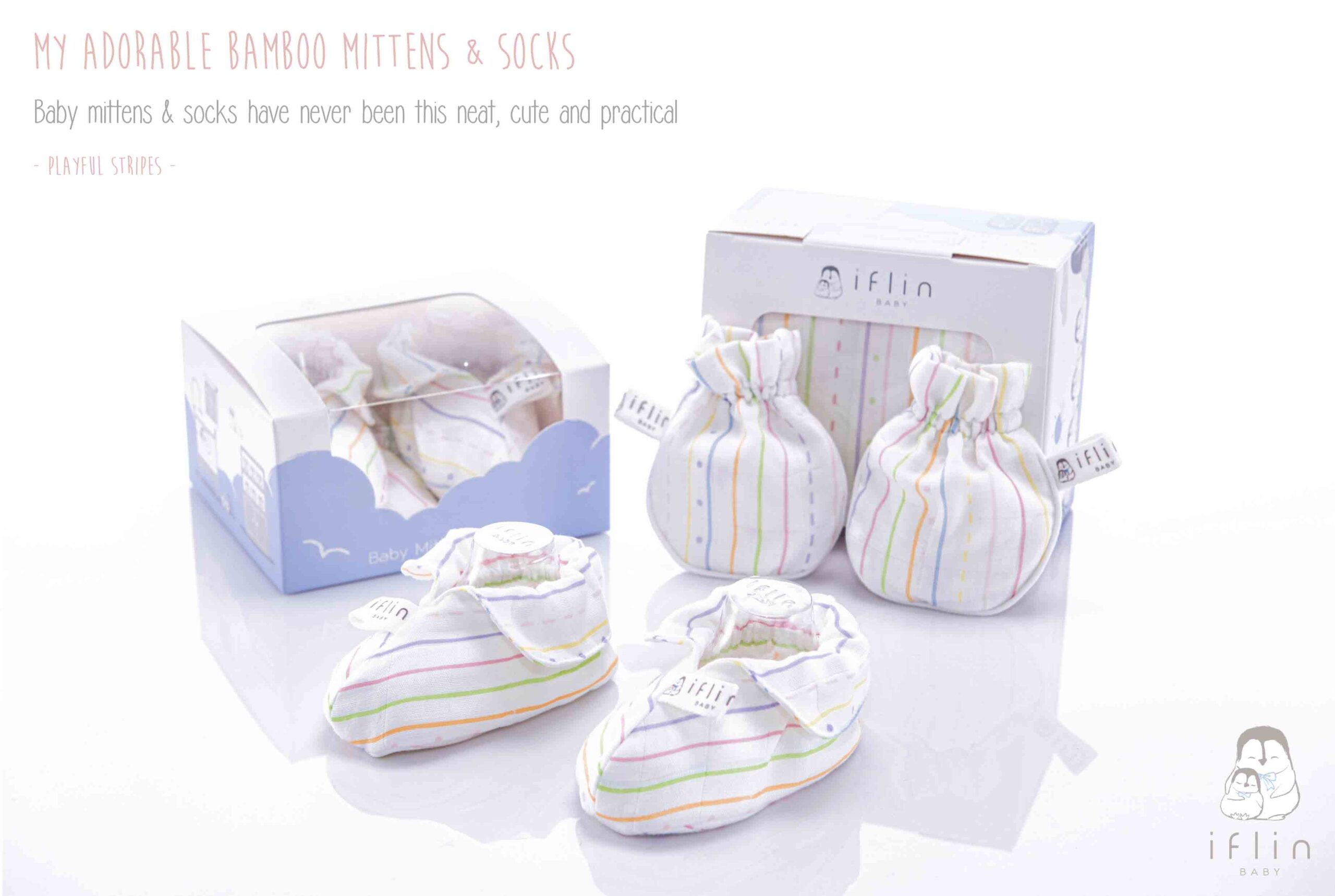 เซตถุงมือ & ถุงเท้าของIflin Baby (อิฟ-ลิ่น เบบี้) ทำจากผ้าใยไผ่เนื้อละเอียด นุ่มนิ่ม ละมุนผิว ไม่บาดผิวและไม่ระคายเคืองผิวลูกน้อย