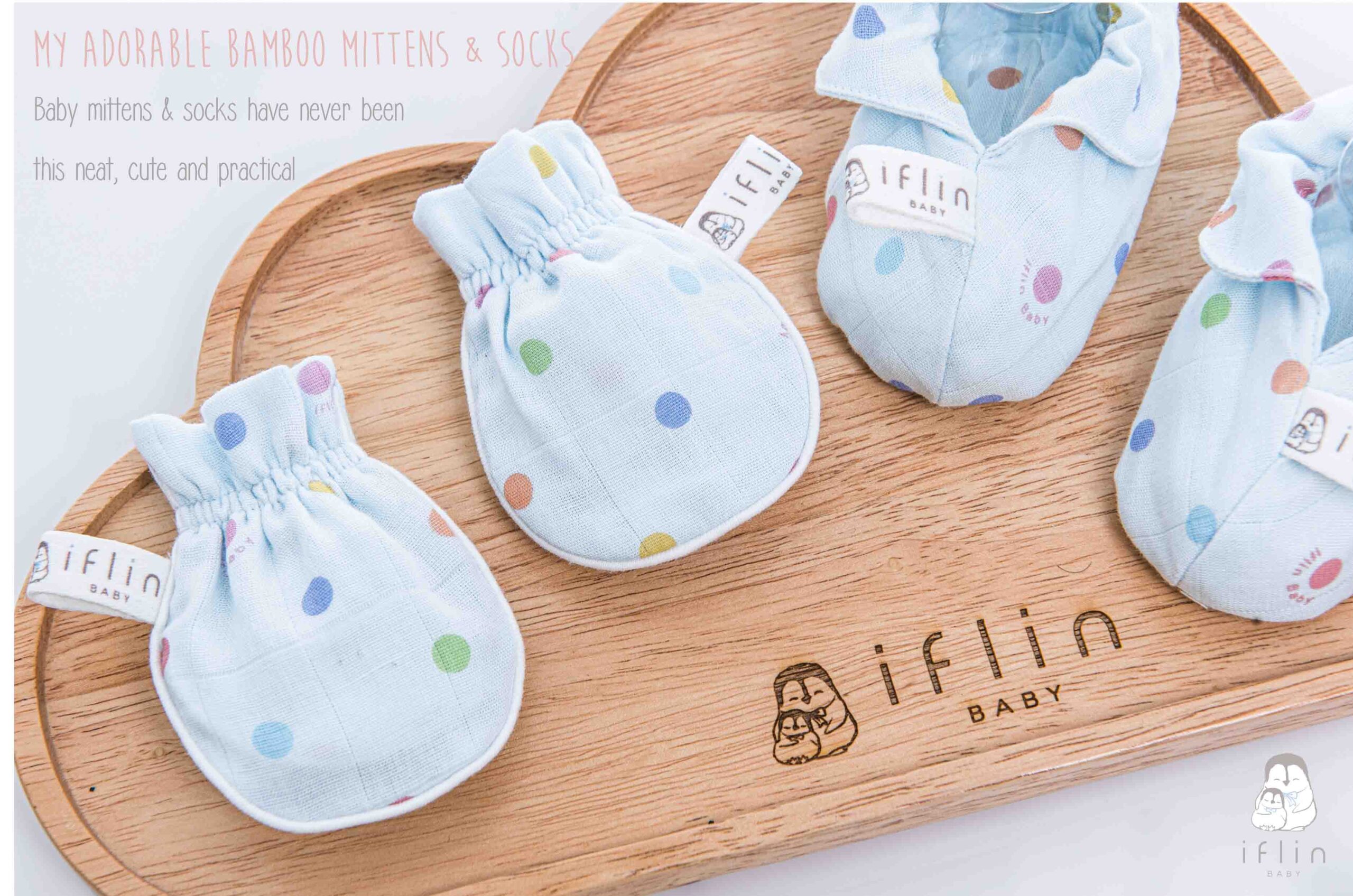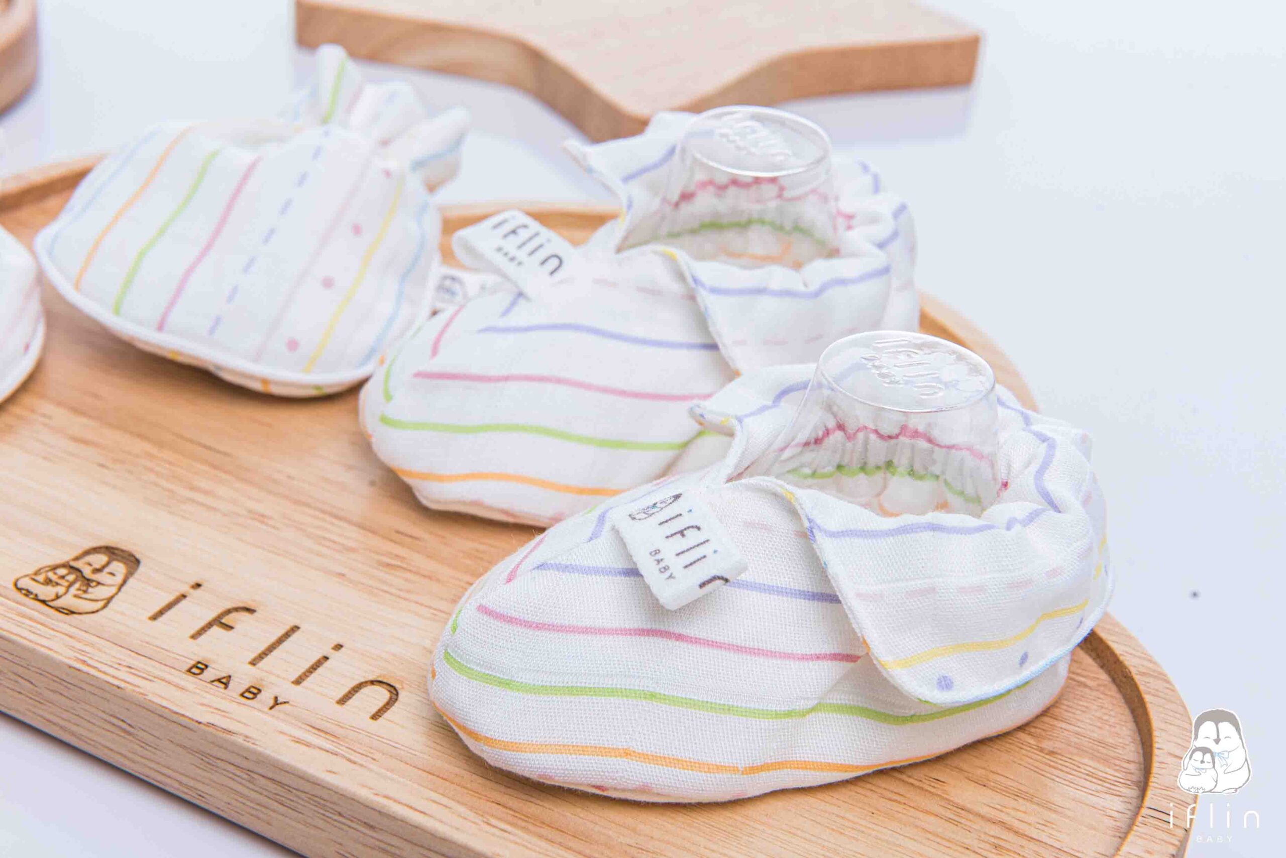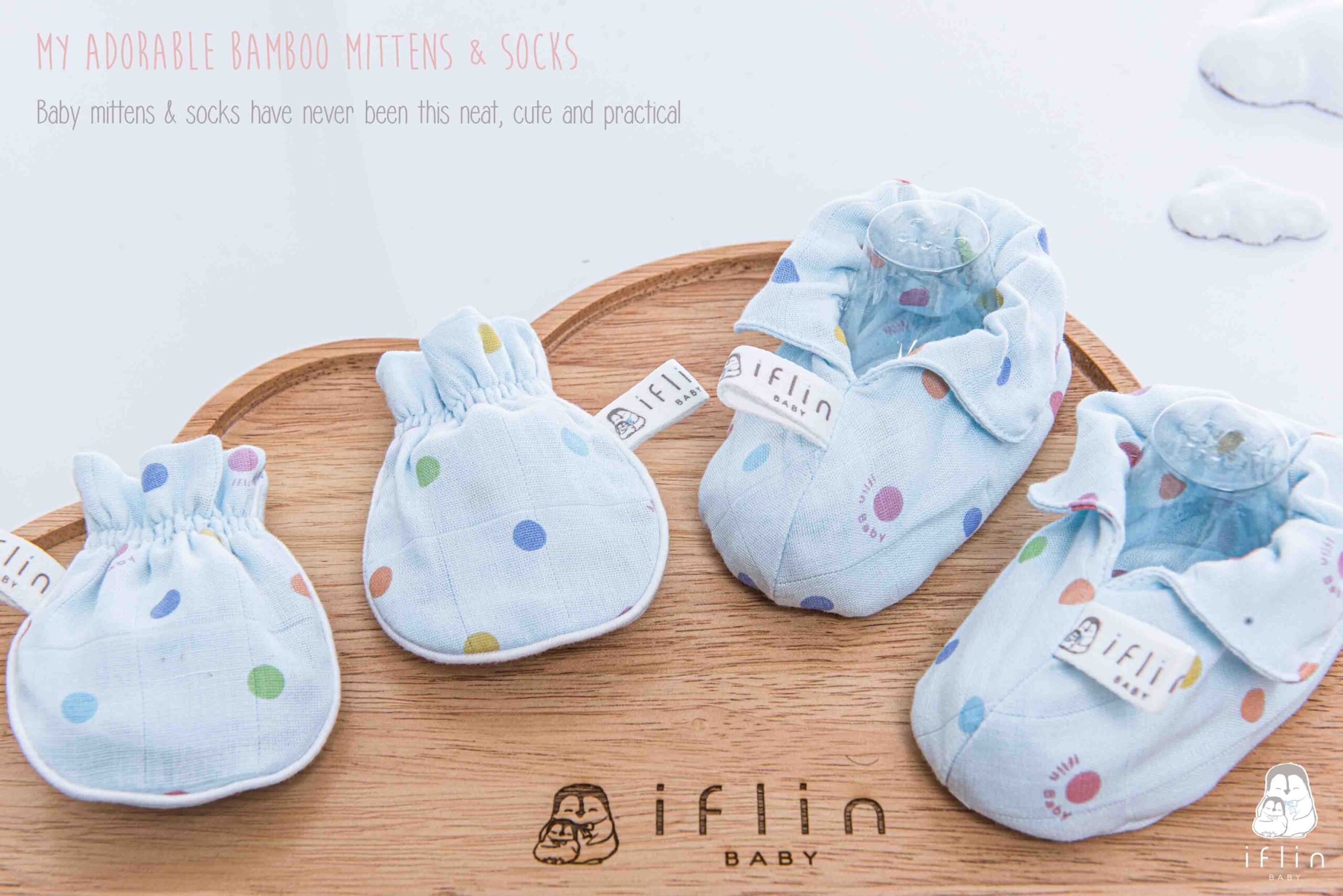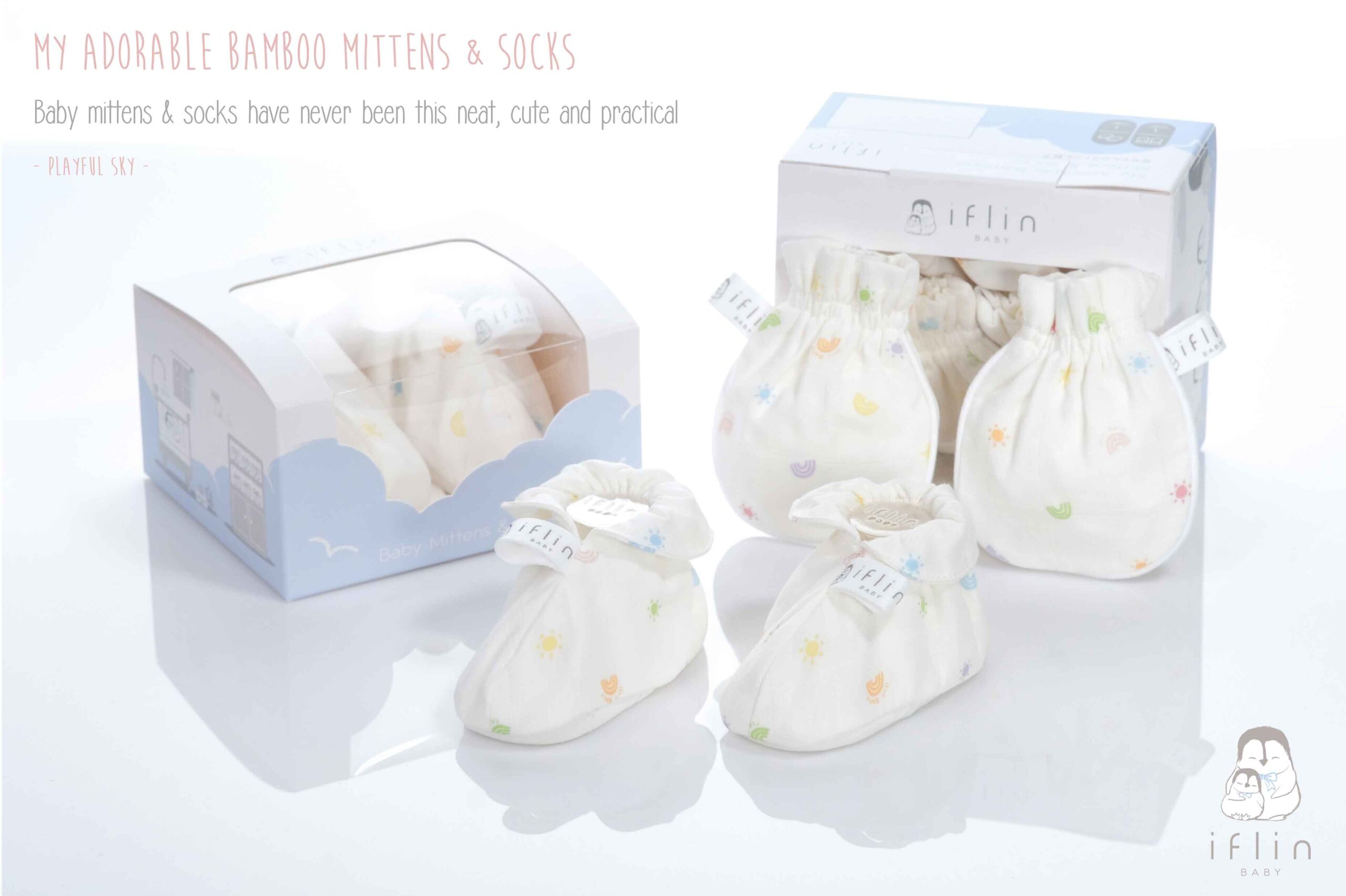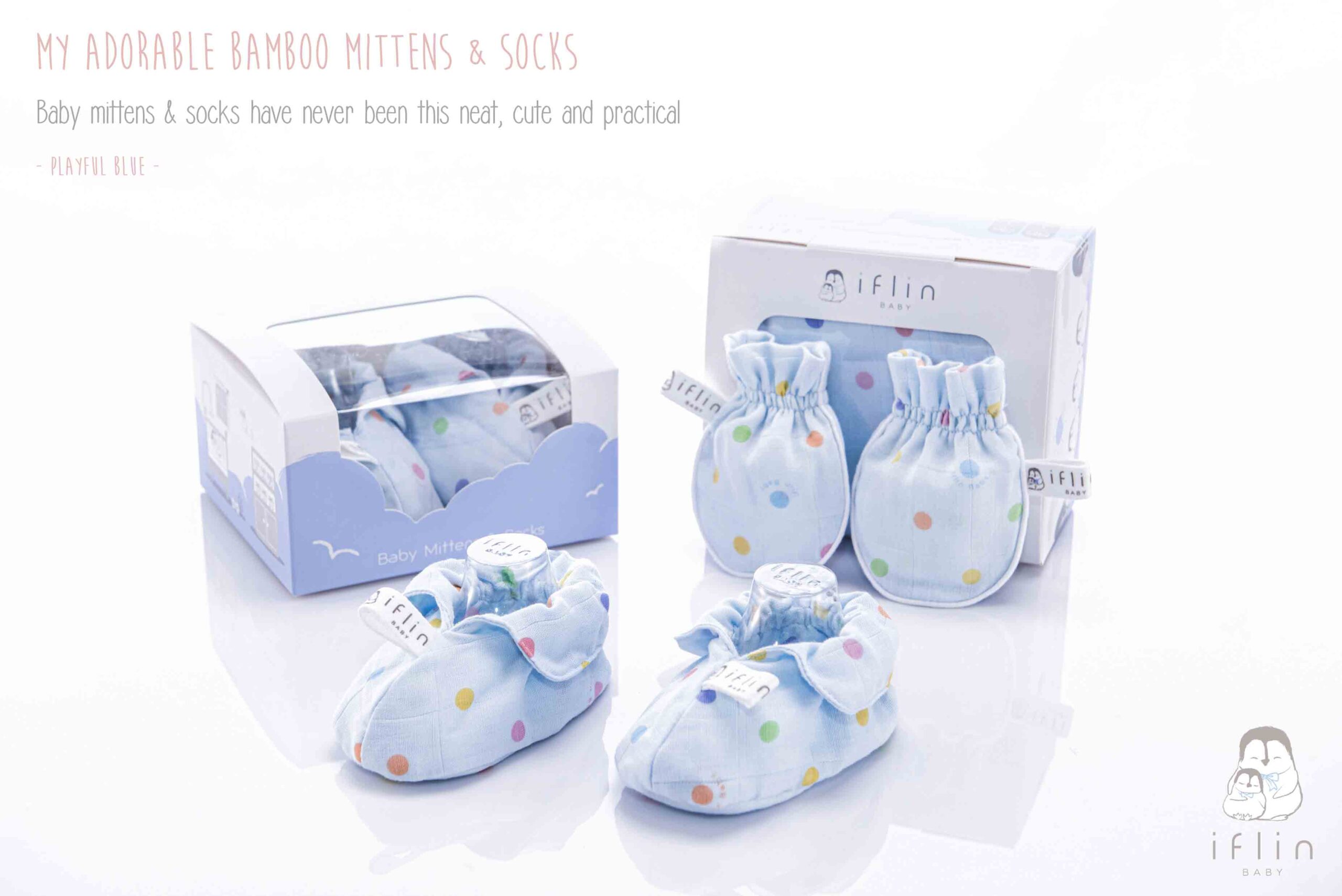 เซตถุงมือ & ถุงเท้าของIflin Baby (อิฟ-ลิ่น เบบี้) ทำจากผ้าใยไผ่เนื้อละเอียด นุ่มนิ่ม ละมุนผิว ไม่บาดผิวและไม่ระคายเคืองผิวลูกน้อย