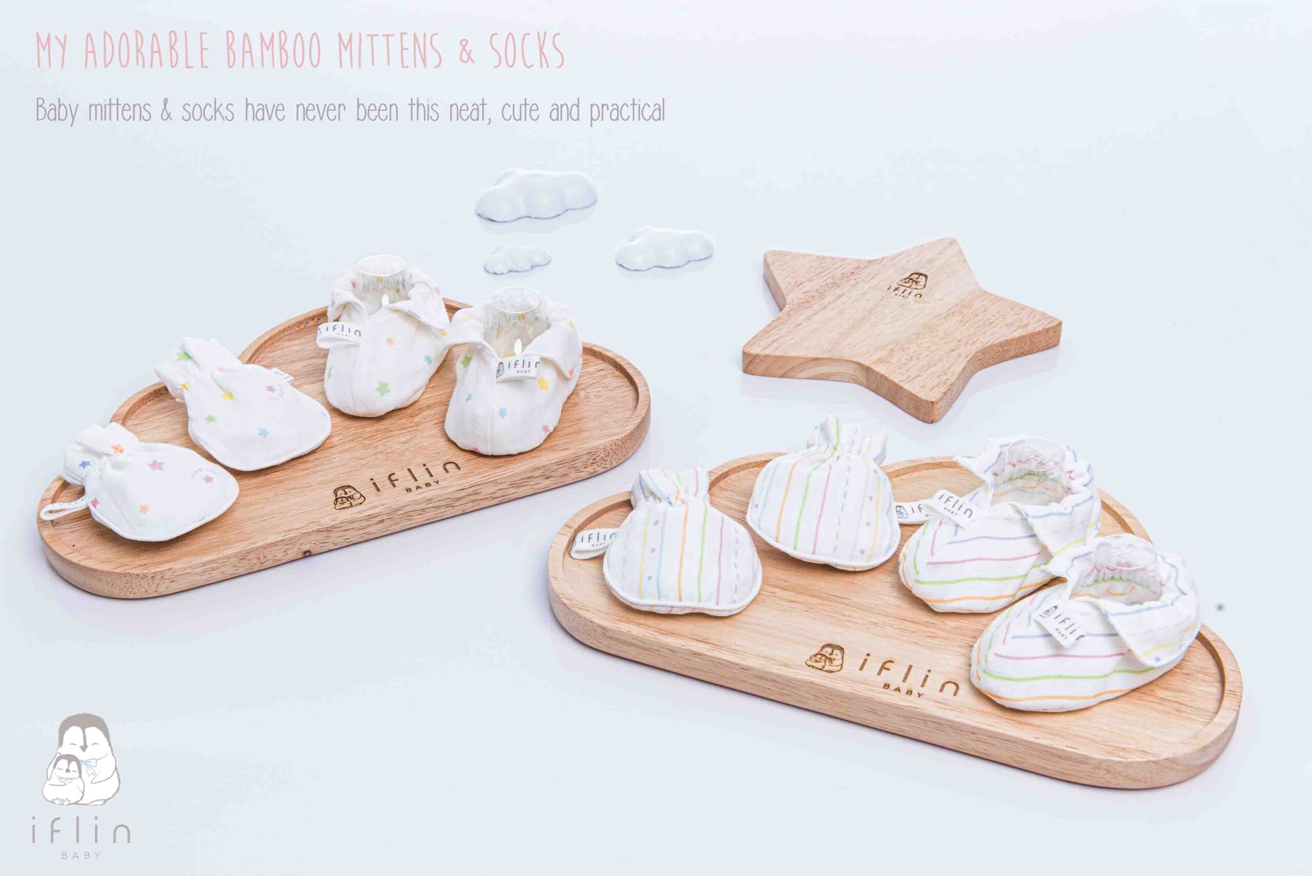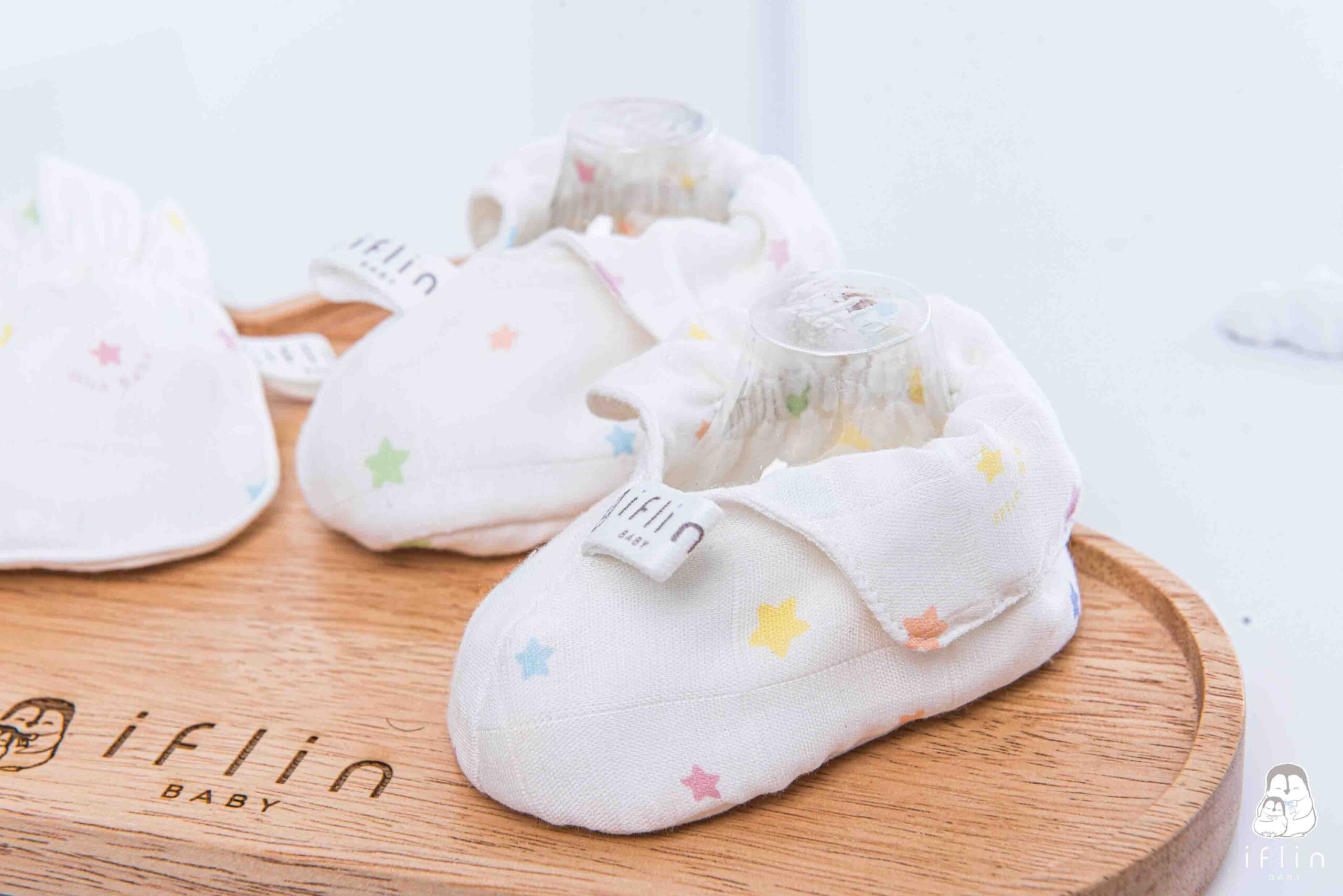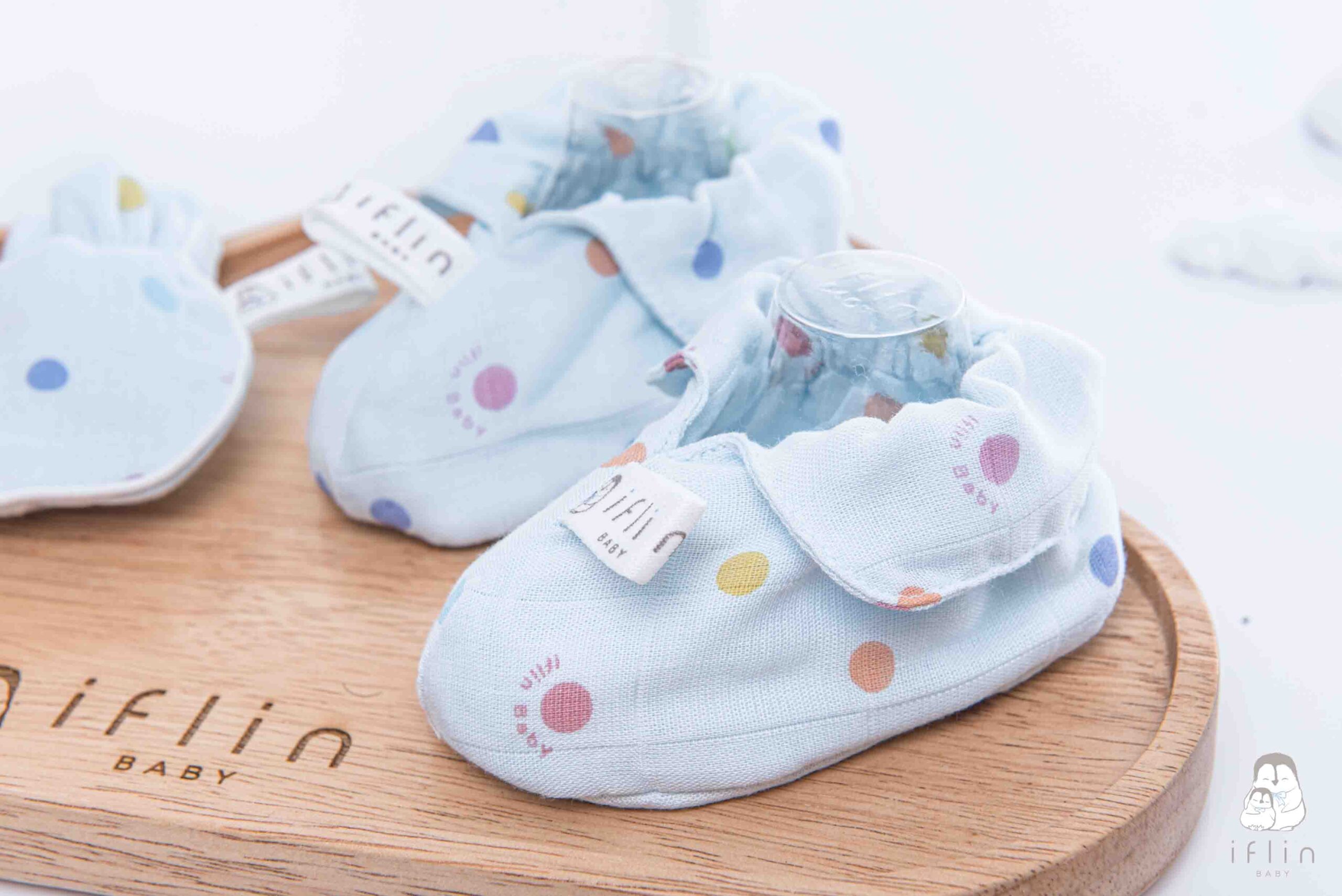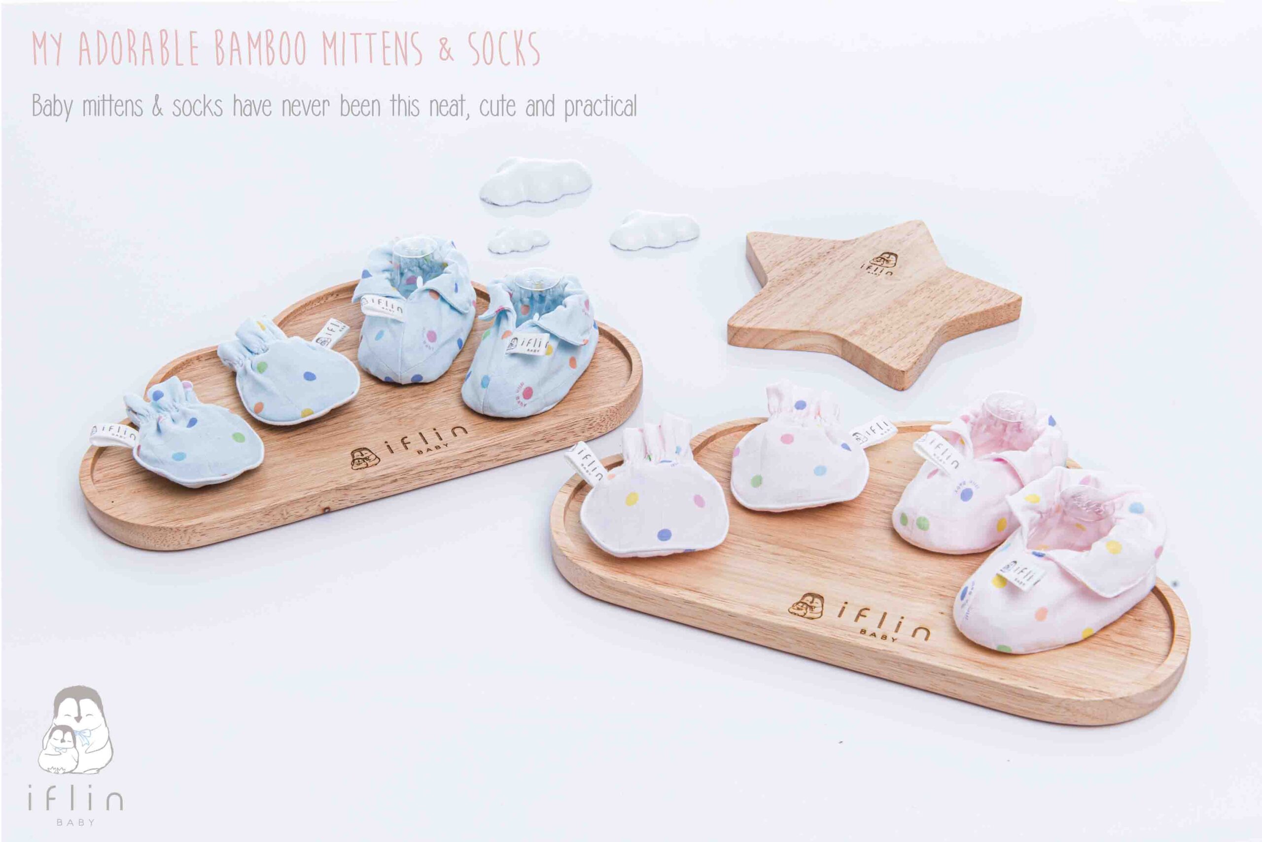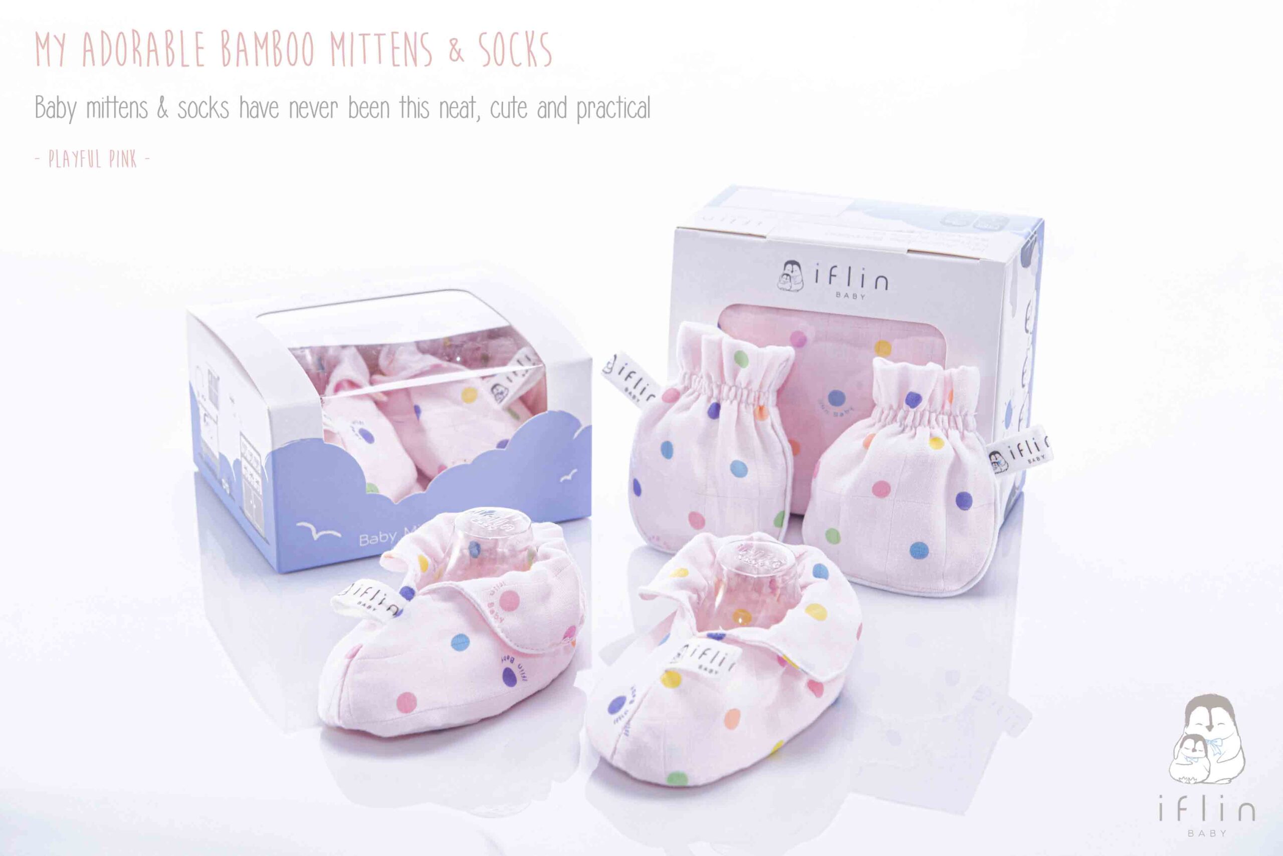 เซตถุงมือ & ถุงเท้าของIflin Baby (อิฟ-ลิ่น เบบี้) ทำจากผ้าใยไผ่เนื้อละเอียด นุ่มนิ่ม ละมุนผิว ไม่บาดผิวและไม่ระคายเคืองผิวลูกน้อย