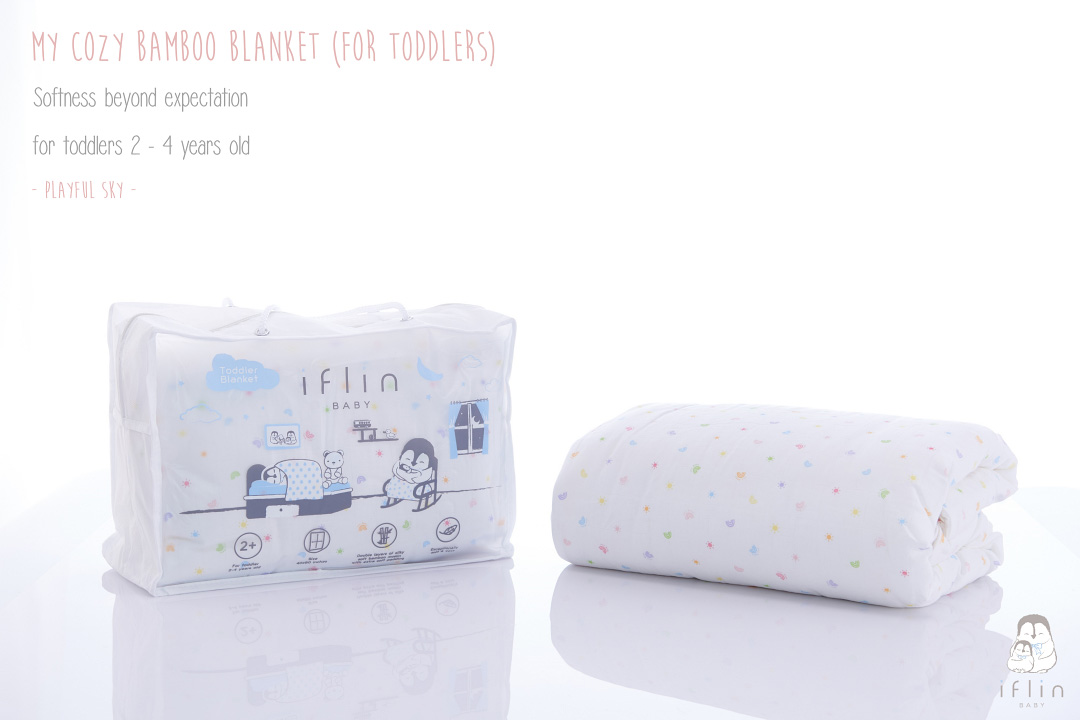 My Cozy Bamboo Blanket (for Toddlers) ทำจากผ้าใยไผ่ 2 ชั้นและมีpaddingนุ่มๆบุตรงกลาง ทำให้ผ้าห่มใยไผ่ไซส์เด็กโตผืนนี้เป็นผ้าห่มที่นุ่มมาก นิ่มฟู ห่มสบาย น่ากอด น่าใช้ และด้วยคุณสมบัติของผ้าใยไผ่ ที่สามารถช่วยควบคุมอุณหภูมิขณะใช้งาน (Thermal Regulate) และมีผิวสัมผัสเย็นสบาย ทำให้ผ้าห่มใยไผ่ของเราสามารถใช้ได้ทั้งในห้องแอร์และนอกห้องแอร์ ห่มนอนแอร์ก็อุ่นสบายกำลังพอดี ห่มนอกห้องแอร์ก็เย็นสบาย ระบายอากาศได้ดี ไม่ร้อนอบ ช่วยลดปัญหาลูกไม่ยอมห่มผ้า หรือลูกชอบถีบผ้าห่ม