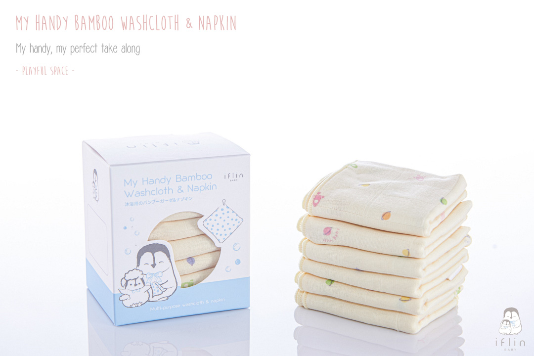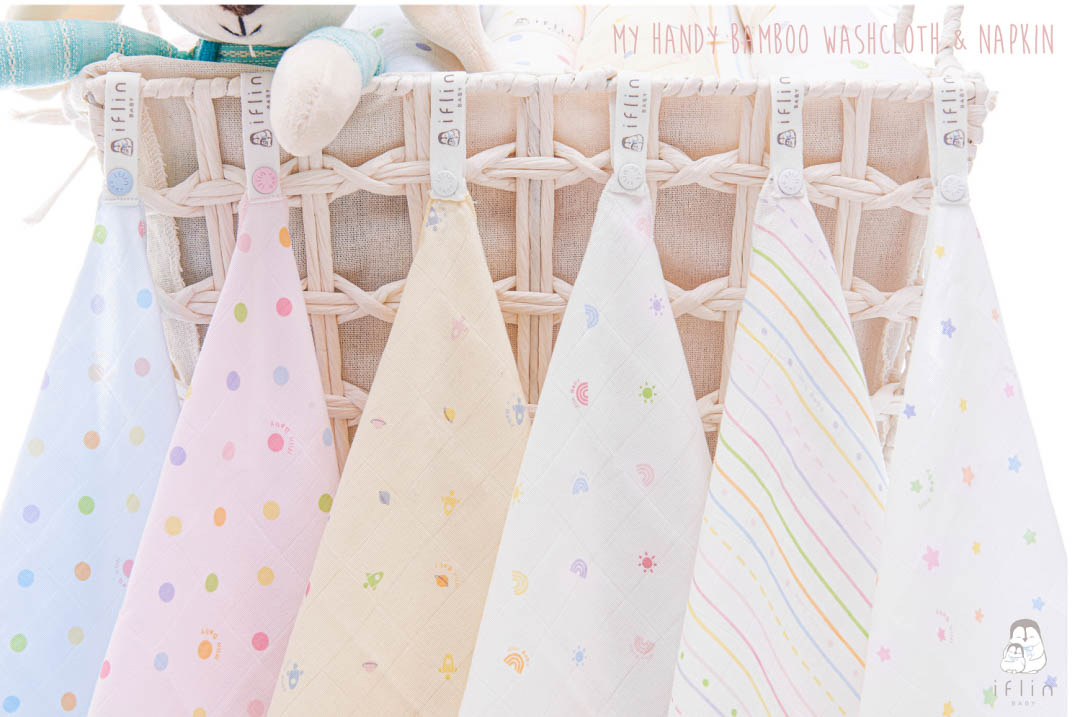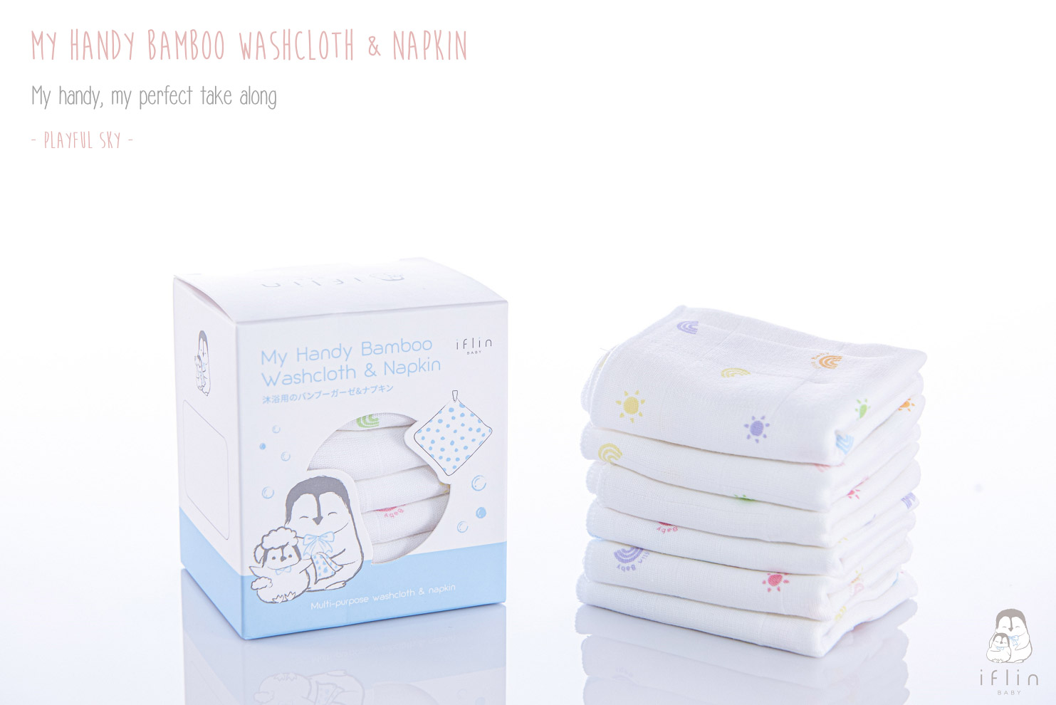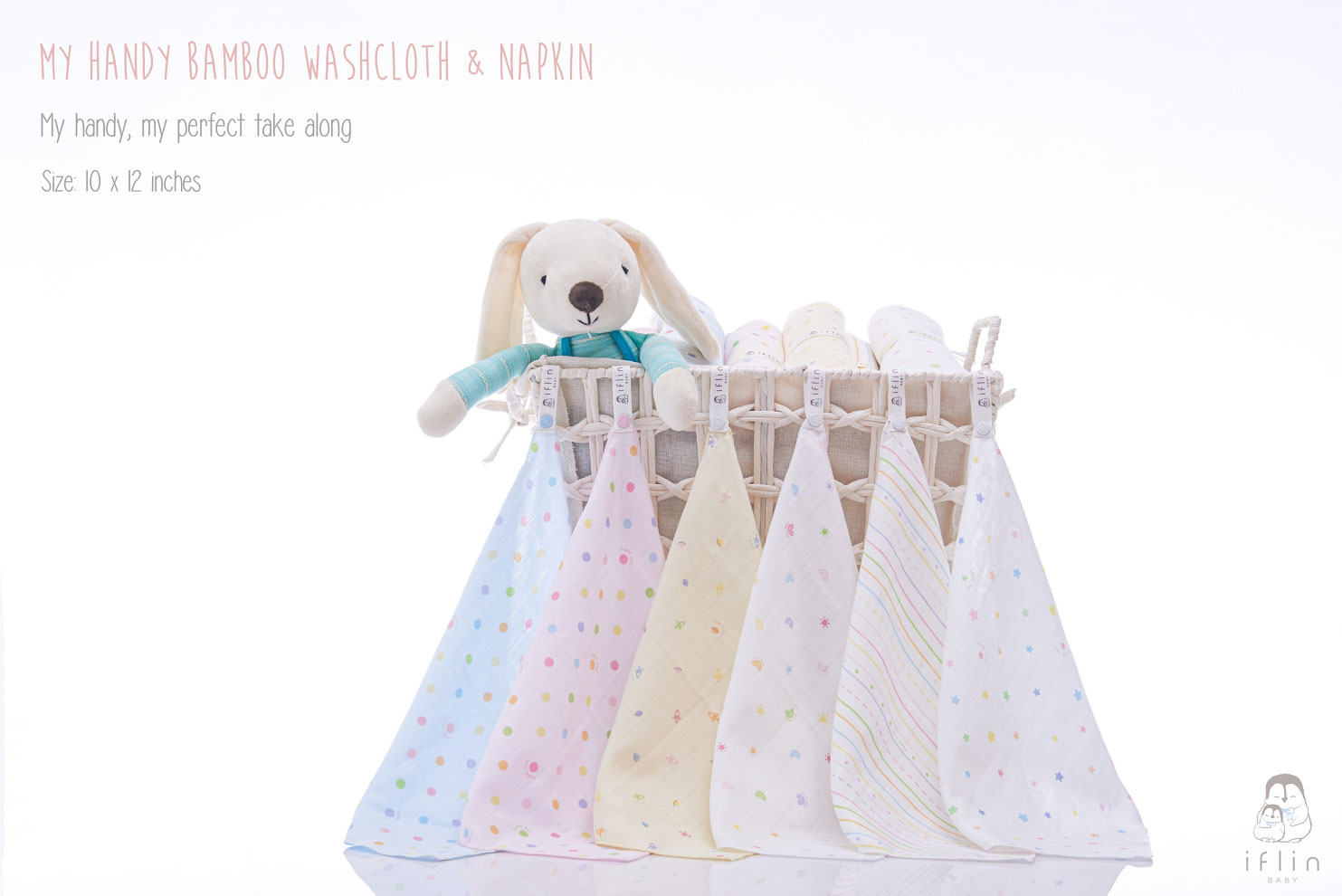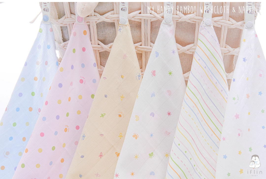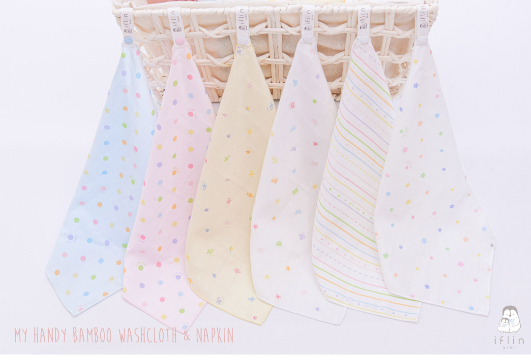 My Handy Bamboo Washcloth & Napkin จึงถูกdesignออกมาเพื่องานclean upโดยเฉพาะ ขนาดเล็กพอดี กะทัดรัด พกพาง่าย จำเป็นต้องมีติดตัว ติดกระเป๋าไว้ตลอด แถมยังมีหูห้อยติดกระดุมที่มุมผ้า เอาไว้ห้อย เกี่ยว แขวน หรือคล้องกับหูกระเป๋าของคุณแม่ได้ด้วย…คุณแม่หลายท่านชมเข้ามาว่า ขนาดของผ้า เล็กกำลังพอดี พกพาและใช้งานสะดวก ห้อยกับเสื้อลูกได้เลย