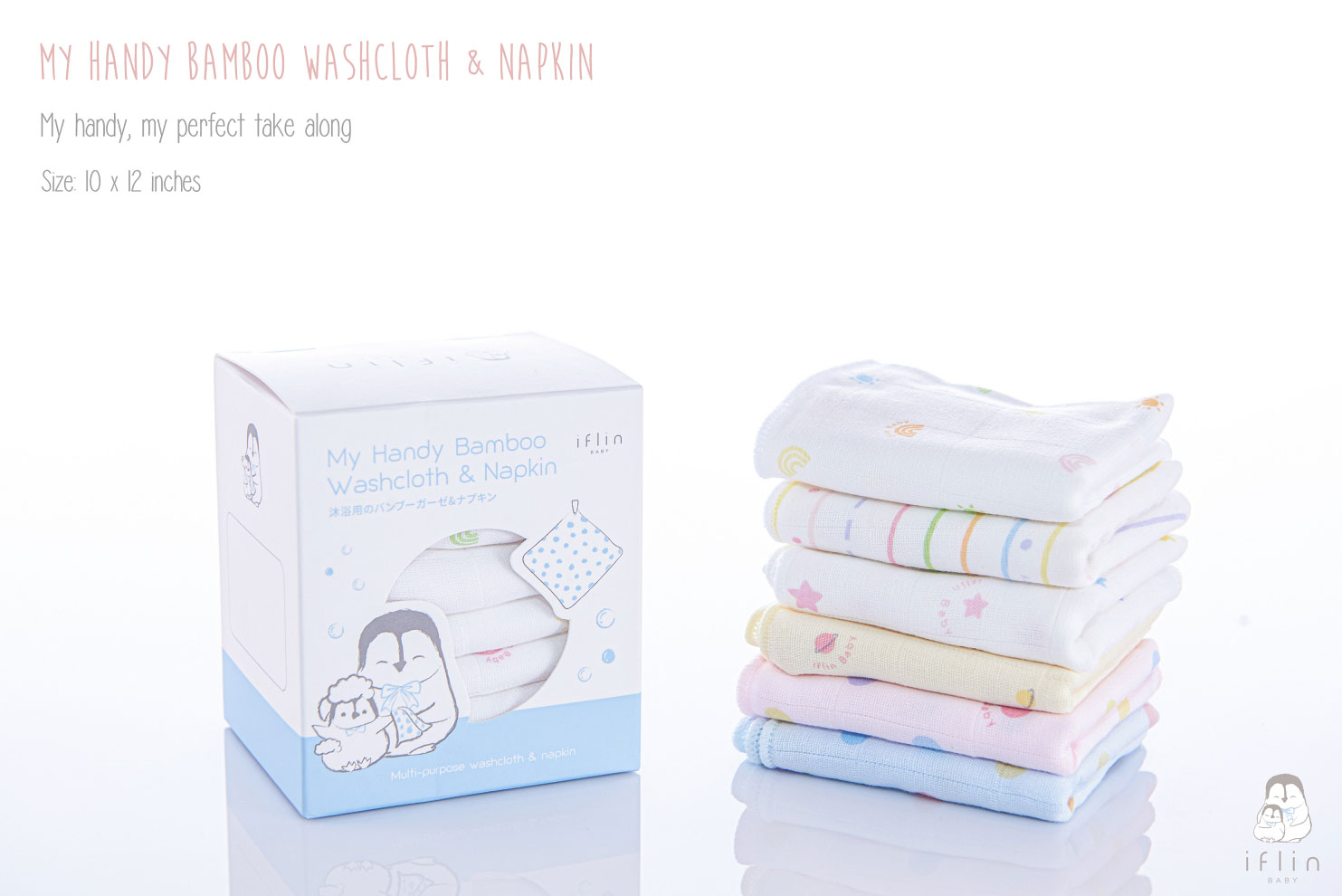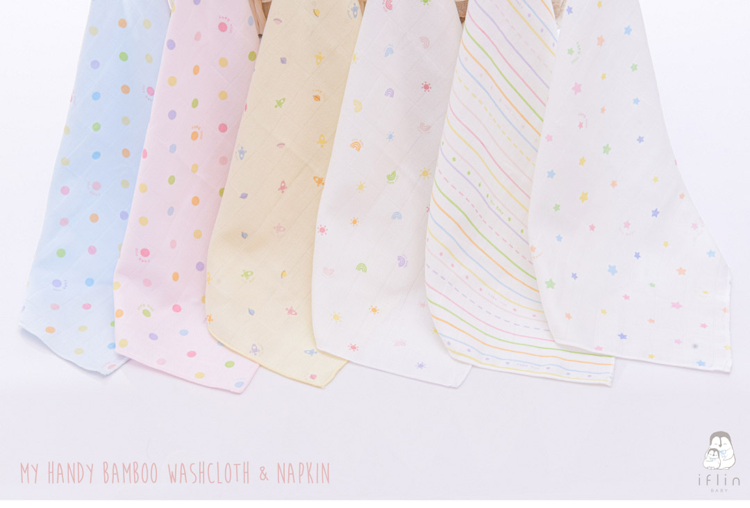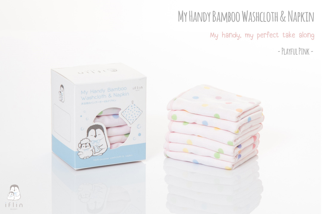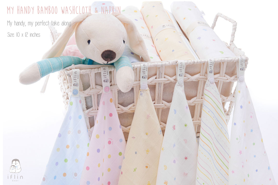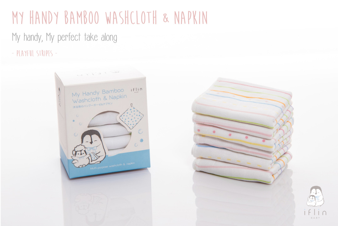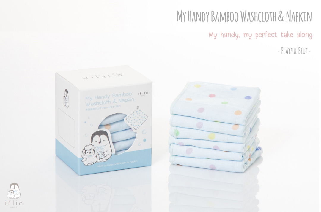 My Handy Bamboo Washcloth & Napkin จึงถูกdesignออกมาเพื่องานclean upโดยเฉพาะ ขนาดเล็กพอดี กะทัดรัด พกพาง่าย จำเป็นต้องมีติดตัว ติดกระเป๋าไว้ตลอด แถมยังมีหูห้อยติดกระดุมที่มุมผ้า เอาไว้ห้อย เกี่ยว แขวน หรือคล้องกับหูกระเป๋าของคุณแม่ได้ด้วย…คุณแม่หลายท่านชมเข้ามาว่า ขนาดของผ้า เล็กกำลังพอดี พกพาและใช้งานสะดวก ห้อยกับเสื้อลูกได้เลย