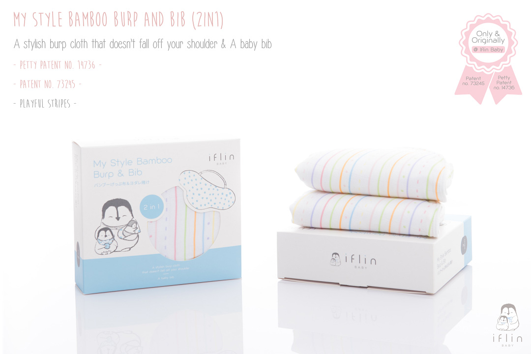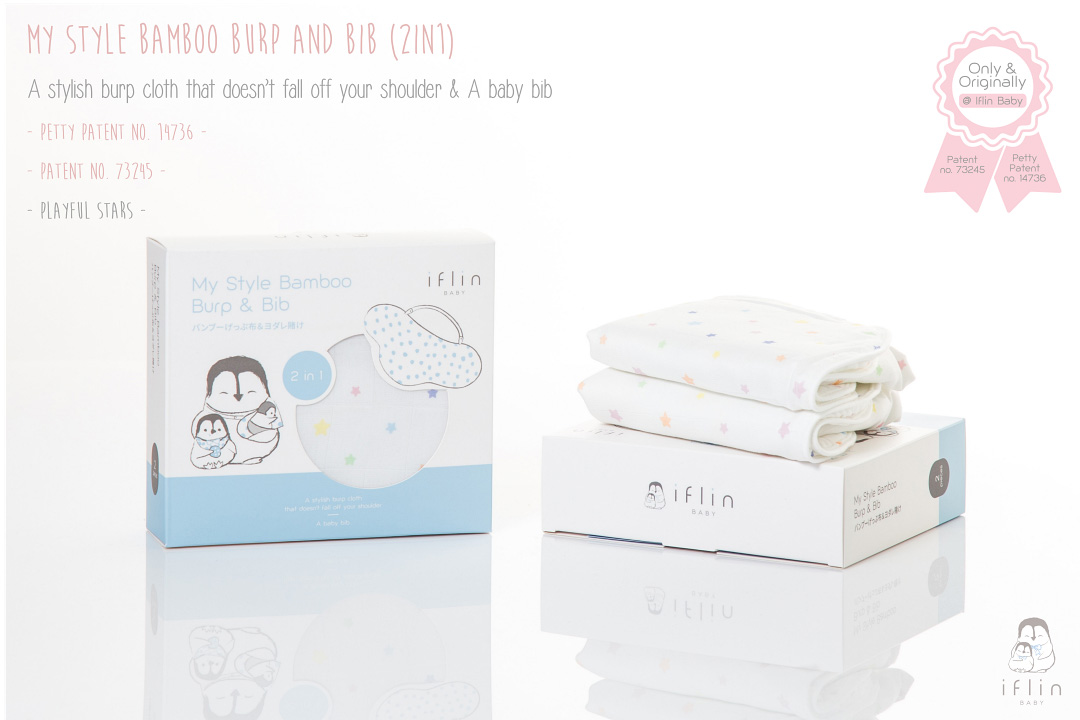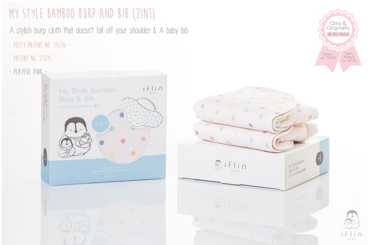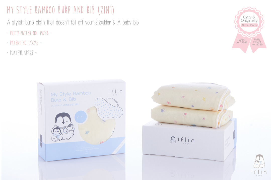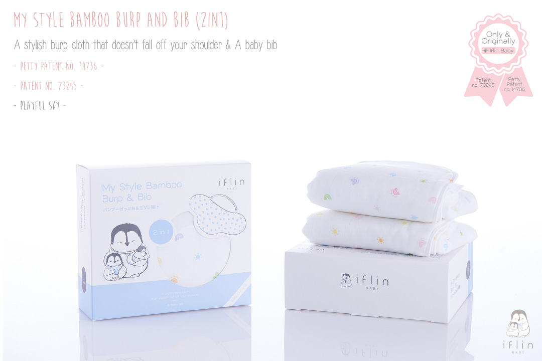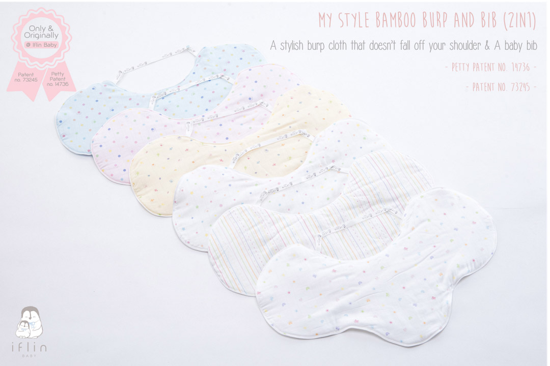 Iflin Baby (อิฟ-ลิ่น เบบี้) เป็นแบรนด์แรกและแบรนด์เดียว (Only & Originally @ Iflin Baby) ที่ริเริ่มและตั้งใจออกแบบผ้าพาดบ่าแบบไม่หล่นพื้นผืนนี้ เพื่อตอบโจทย์และแก้ไขปัญหาให้คุณแม่ทุกท่าน แทนการใช้ผ้าอ้อมธรรมดาๆพาดบ่า ซึ่งมักจะหล่นพื้นตลอดเวลาและดูพะรุงพะรังไม่สวยงาม ผ้าพาดบ่าBurp&Bibผืนนี้ ถูกออกแบบมาให้ดูเนี้ยบ ดูดี ดูเรียบร้อยไม่รุ่มร่าม ที่สำคัญที่สุดคือไม่หล่นพื้น ใช้พาดบ่าไปเดินห้าง ไปงานปาร์ตี้ ไปงานแต่งงาน หรือเวลาแต่งตัวสวยๆได้อย่างสบายใจไม่เคอะเขินจุดเด่นที่ไม่เหมือนใครอีกอย่างของMy Style Bamboo Burp & Bib คือมีpaddingนุ่มๆบุอยู่ด้านใน เพื่อให้ลูกน้อยสามารถซบหน้าหลับบนบ่าของคุณแม่ได้อย่างนุ่มสบาย โดยไม่ต้องกลัวกระดูกบ่าแข็งๆทิ่มหน้าลูกอีกแล้วค่ะ ต่อไปนี้จะพาดบ่าจับเรอ หรือจะพาดบ่าเดินเล่นshopping ลูกก็ซบหน้าได้นุ่มสบายบนบ่าเราค่า
